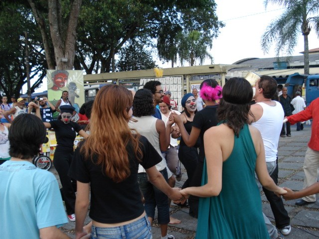 Figura 3: Ação do EIA em Itapcerica da Serra, 2008. O EIA é um coletivo autogestionado e aberto, que realiza festivais urbanos em colaboração com outros coletivos e com pessoas no espaço público. Foto Euler Sandeville Jr.
